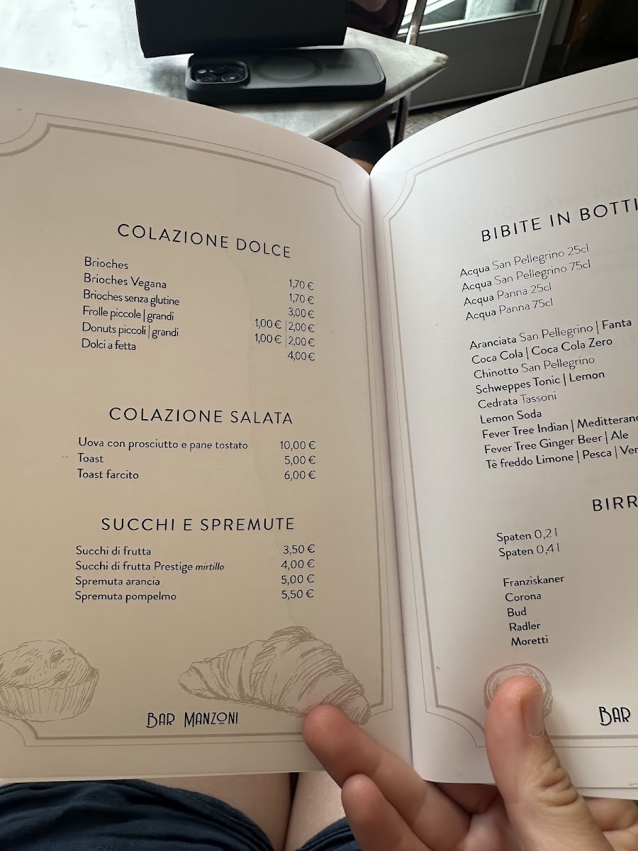 Bar Manzoni Mattioni Cafe Menu